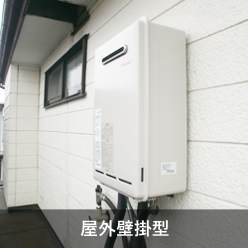 外壁に掛けて設置するタイプです。給湯器本体の下から配管が出ています。配管カバーが取り付けられている場合もあります。給湯器本体の横から配管が出ていなければ壁掛型です。