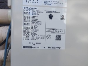 加賀市 ノーリツ給湯器→ノーリツ石油給湯機付ふろがまOTQ-4706AY 給湯器交換工事