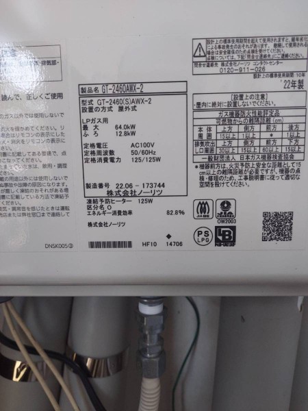 能美市 ノーリツ給湯器GT-2460AWX-2 給湯器交換工事